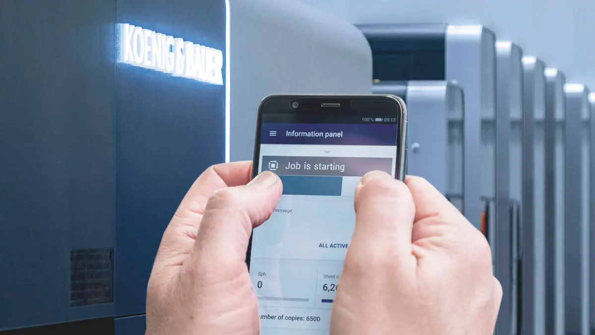 Nach der Maschineninstallation integriert ein Spezialistenteam von Koenig & Bauer die Rapida 106 X über das Produktions-Management-System LogoTronic vollständig in den Druckerei-Workflow. Mit dem LogoTronic Cockpit haben die Druckfachleute von Courvoisier-Gassmann wichtige Leistungskennzahlen in Echtzeit im Blick - für Analysen oder das KPI-Benchmarking. Mit der Rapida LiveApp (ErgoTronicApp) lässt sich die Maschine über mobile Endgeräte überwachen und steuern.
