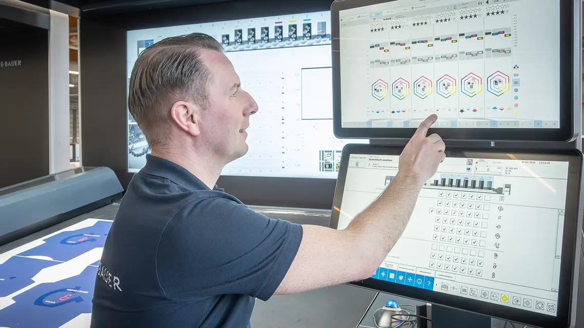 Indem das System die umfangreichen messtechnischen Parameter mit den visuellen Kriterien priorisiert, erkennt und korrigiert es optische Abweichungen, die marktübliche Farbregelsysteme nicht erkennen können. Das Ergebnis ist eine drastisch höhere Konsistenz des Farbeindrucks, selbst wenn externe Prozessparameter wie Papier, Farbe oder Feuchtmittel schwanken. Für den Kunden übersetzt sich dies direkt in die Gewinn-und-Verlustrechnung: Weniger Makulatur bei Jobwechseln und stabilere Fortdruckphasen ermöglichen es Anwendern, länger zu drucken, bevor Gummitücher gewaschen werden müssen.
