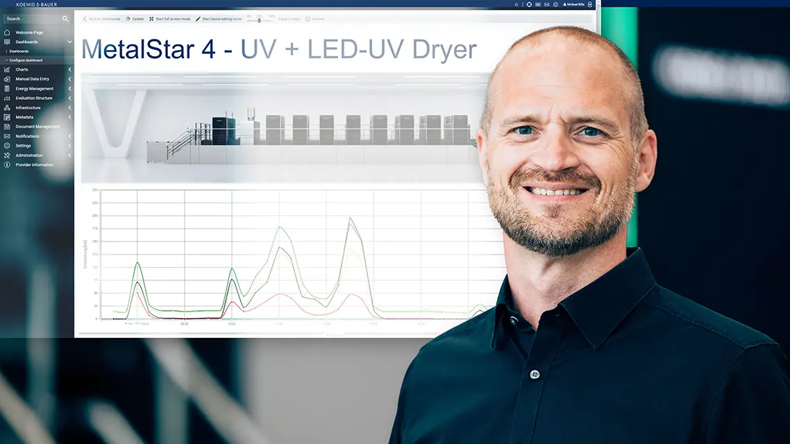 „Die enge Zusammenarbeit zwischen Koenig & Bauer MetalPrint und der Digital Unit im Konzern trägt Früchte. Gemeinsam mit dem zentralen Bereich für die digitale Transformation haben wir das starke Bedürfnis unserer Kund:innen nach mehr Nachhaltigkeit und Senkung der Energiekosten erkannt und vereinfachen durch die Integration von Messgeräten in unsere Maschinen den Einstieg in das Thema Energiemanagement. Die Modularität und Systemunabhängigkeit von VisuEnergy X passt dabei perfekt in die Produktionsumgebungen der Metalldruckbranche, wodurch unseren Kund:innen ein klarer Mehrwert geboten wird“, erklärt Samuel Teufel.