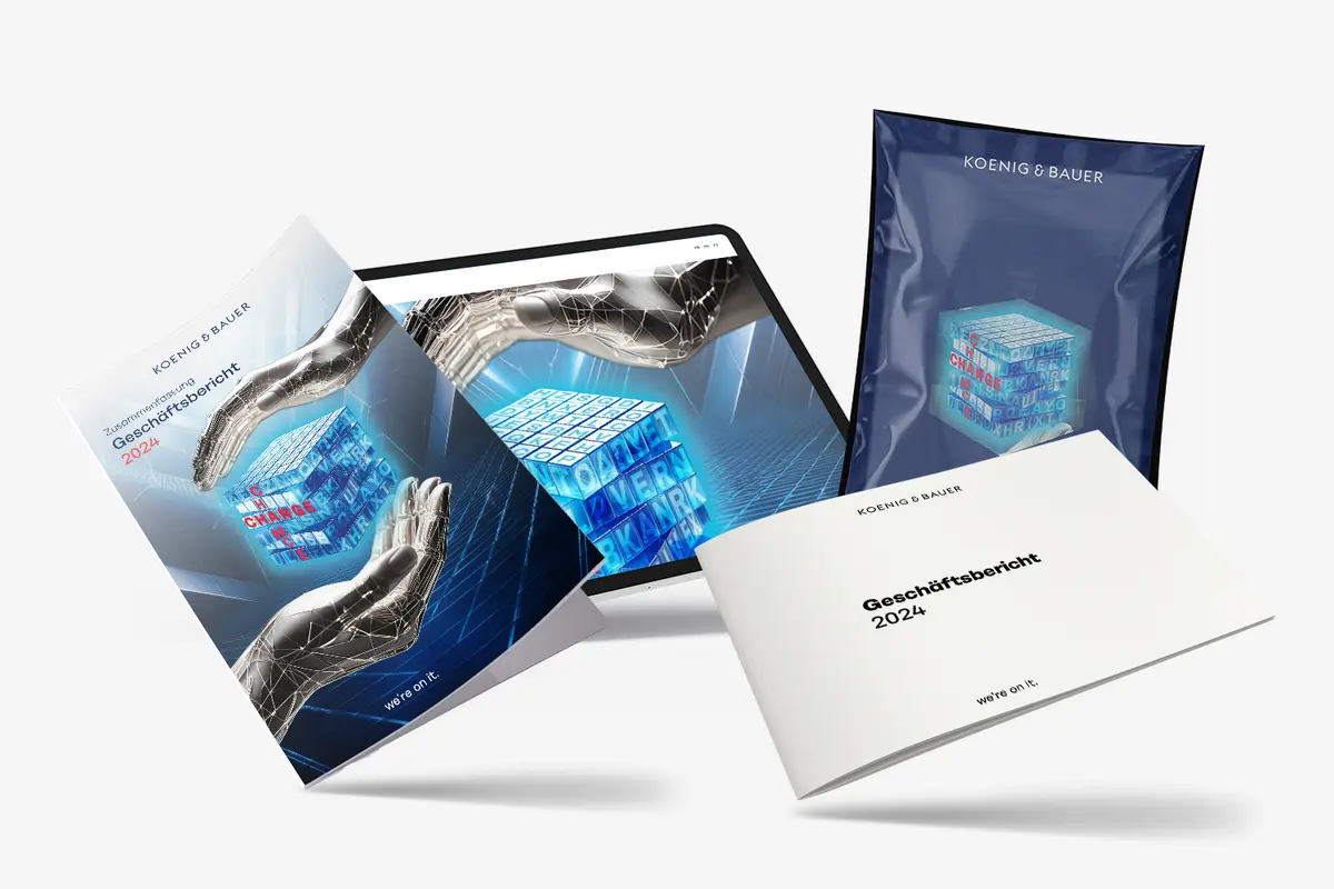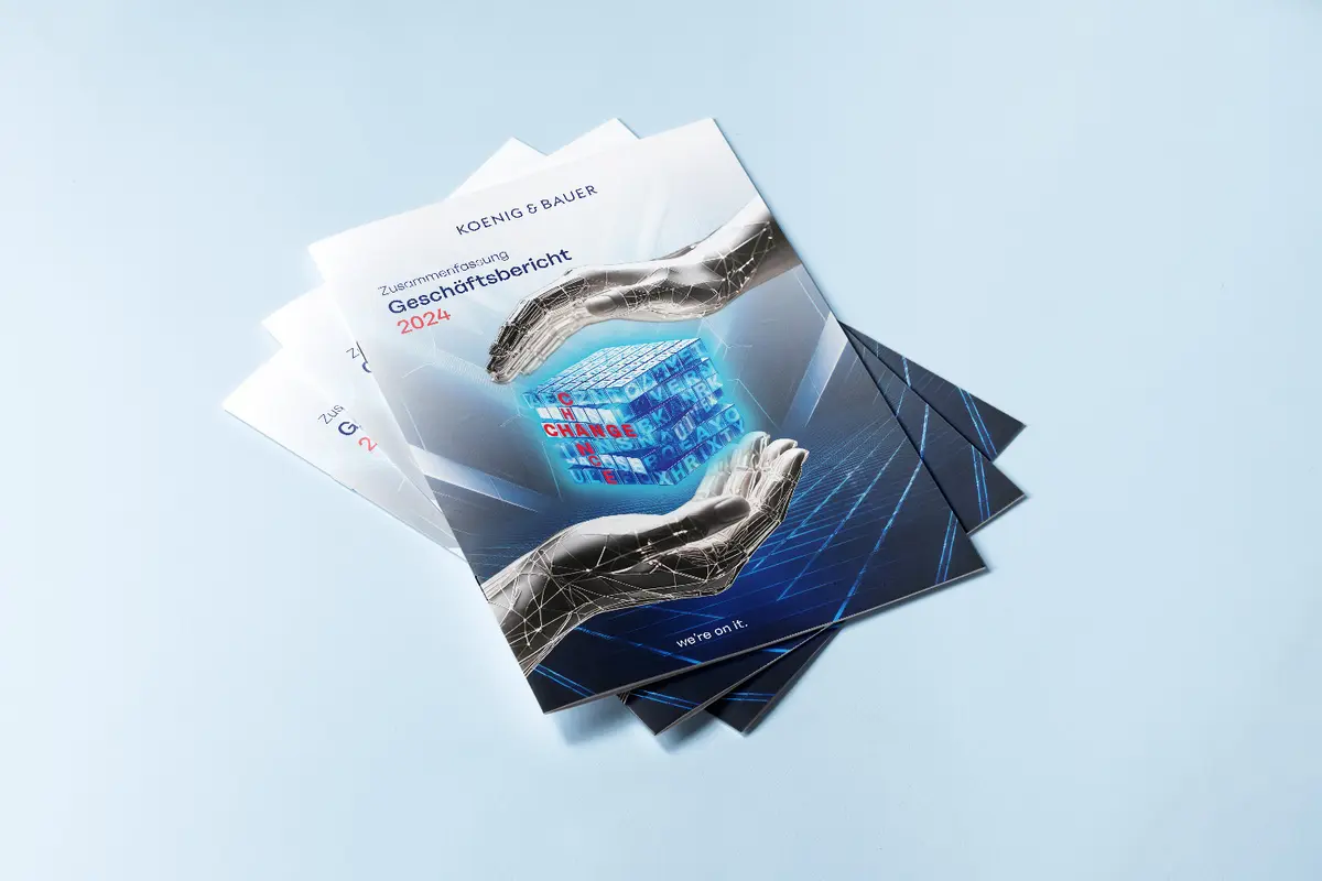 Modul 1: Die Geschäftsberichtszusammenfassung fasst die wichtigsten Kapitel unseres Geschäftsberichts 2024 zusammen und verdeutlicht mit der Imagestrecke unter dem Motto „ChanGe/ChanCe“ unser seit über 200 Jahren gelebtes Handeln. Denn Koenig & Bauer hat sich stets neuen Herausforderungen gestellt, Innovationen vorangetrieben und Chancen genutzt – heute sind Wandel und Möglichkeiten enger verknüpft als je zuvor. Veränderung ist mehr als eine äußere Herausforderung, sondern eine aktiv zu gestaltende Möglichkeit, denn bereits ein einziger Buchstabe kann den Unterschied machen und „ChanCe“ in „ChanGe“ verwandeln – ein Sinnbild dafür, wie kleine Anpassungen große Wirkung entfalten können. Wie in den Vorjahren bieten wir Ihnen ein besonderes Auspackerlebnis, indem wir diese Zusammenfassung in einer nachhaltigen, flexiblen Versandtasche präsentieren.
