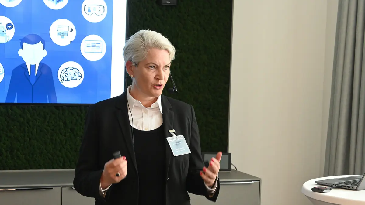 Sandra Wagner, VP Digitalization bei Koenig & Bauer, begeisterte das Publikum in ihrer Keynote "Wie Koenig & Bauer Ihr Geschäftsmodell unterstützt" mit Inhalten rund um das Zukunftsthema Digitalisierung. Die Besucher:innen erhielten spannende Denkanstöße, warum Digitalisierung notwendig ist, wie künstliche Intelligenz die Industrie verändert und sogar erste exklusive Einblicke, welche Produktneuheiten auf der drupa zu erwarten sind.