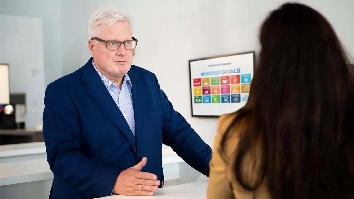 Vorstandssprecher Dr. Andreas Pleßke: „Verantwortung und Engagement für Soziales, Umwelt und Gesellschaft haben für Koenig & Bauer seit der Unternehmensgründung vor 204 Jahren einen außerordentlich hohen Stellenwert. Die Prinzipien und Ziele des UN Global Compact entsprechen den Werten und Grundsätzen, nach denen wir unsere Geschäfte führen. Im Rahmen der strategischen Weiterentwicklung unserer Unternehmensgruppe wollen wir überall dort, wo wir Einfluss nehmen können, unserer sozialen, ökologischen und gesellschaftlichen Verantwortung über vielfältige ESG-Aktivitäten und Innovationen noch stärker gerecht werden.“