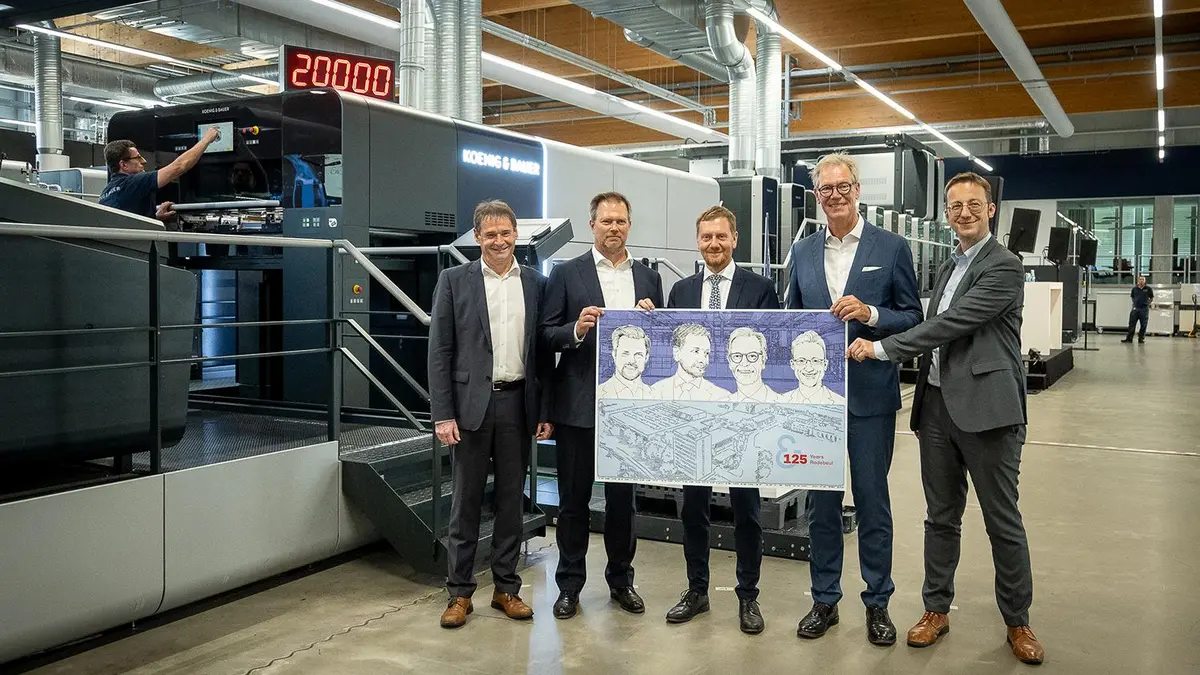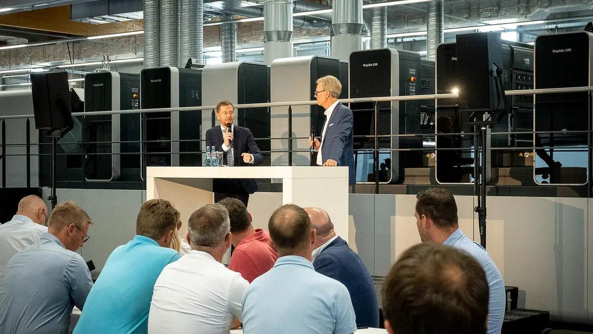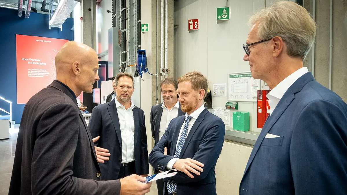 Am 23. August besuchte Michael Kretschmer, Ministerpräsident des Freistaates Sachsen, das Koenig & Bauer-Werk in Radebeul. Im Vorfeld des 125. Jubiläums des als Dresdner Schnellpressenfabrik gegründeten Unternehmens informierte sich der Ministerpräsident über jüngste Entwicklungen und aktuelle Herausforderungen im Druckmaschinenbau.