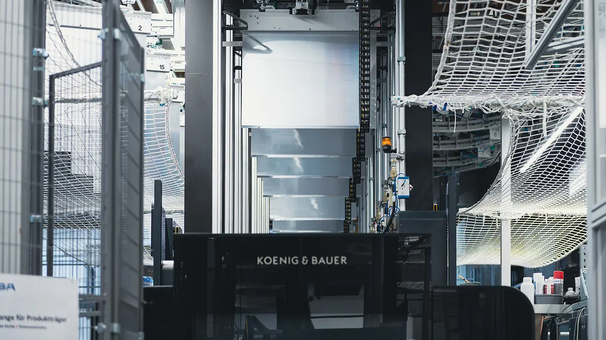 Mehr als eine Million Druckplatten transportierte die von Koenig & Bauer installierte Druckplattenlogistik in nur zwei Jahren an zwei Standorten im Druckaus Mainfranken (DHM). Die Zählerstände der im Dezember 2021 in Betrieb genommenen Logistik-Anlagen an den Standorten Marktheidenfeld und Kesselsdorf mit ihren angebundenen Rapida-Bogenoffsetmaschinen zeigten am 15. März 2024 exakt 1.160.634 durchlaufene Druckplatten an.