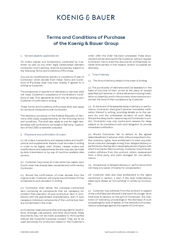 Koenig & Bauer Coding does most of the procurement activities from the Coding headquarter Veitshöchheim, Germany.