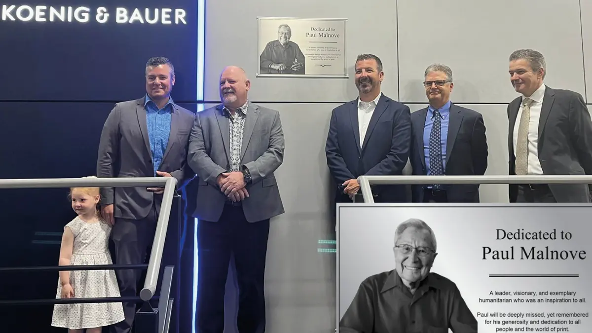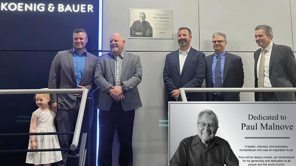 The plaque, unveiled during a heartfelt ceremony held at Malnove’s Omaha plant, pays tribute to the visionary leader whose entrepreneurial spirit and commitment to excellence have shaped the company’s legacy and helped Malnove to maintain its independence. This gesture of respect and appreciation symbolizes the deep-rooted partnership and friendship between Koenig & Bauer and Malnove while also serving as a reminder of the values and dedication that continue to drive both companies forward.Ralf Sammeck, CEO Koenig & Bauer Segment Sheetfed, expressed his desire to dedicate the plaque to “honor Paul and what he has achieved in his life”.