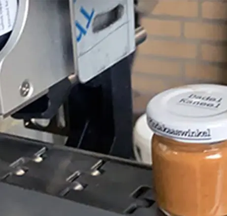The marking of the white-painted metal lids with the flavor and best-before date was previously done in a very simple way. Each product was marked manually with a stamp and ink. This resulted in bad and unsatisfactory print quality.