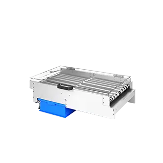 En shingeltransportör som ett alternativ till staplaren. Blandningsbordet erbjuder större mottagningskapacitet vid kontinuerlig drift och gör produktborttagning enklare.